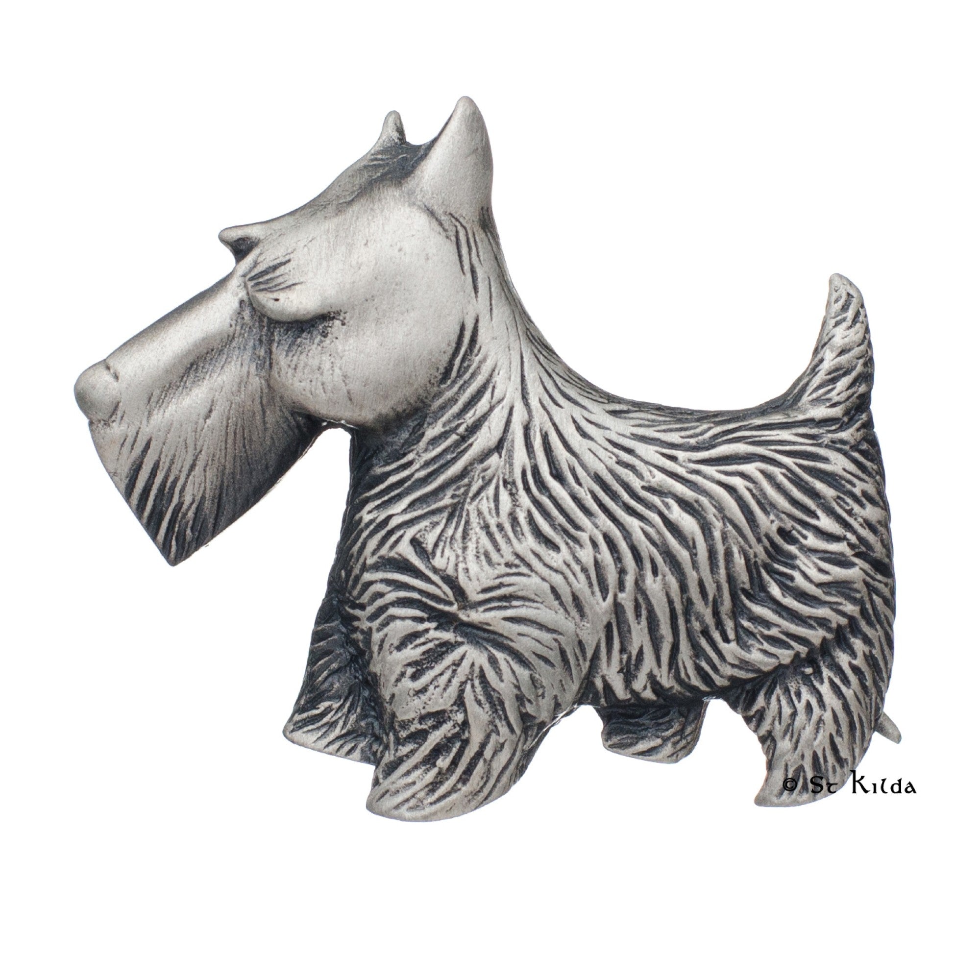 The Scotty Dog, Scottish Terrier or Aberdeen Terrier is a small breed with distinctive wiry hair, ideally suited for the conditions of the north of Scotland. Their forefathers originally came from Blackmount area of Perthshire. They were especially loved by King James VI (later King James I of England), who sent six as gifts to the King of France.