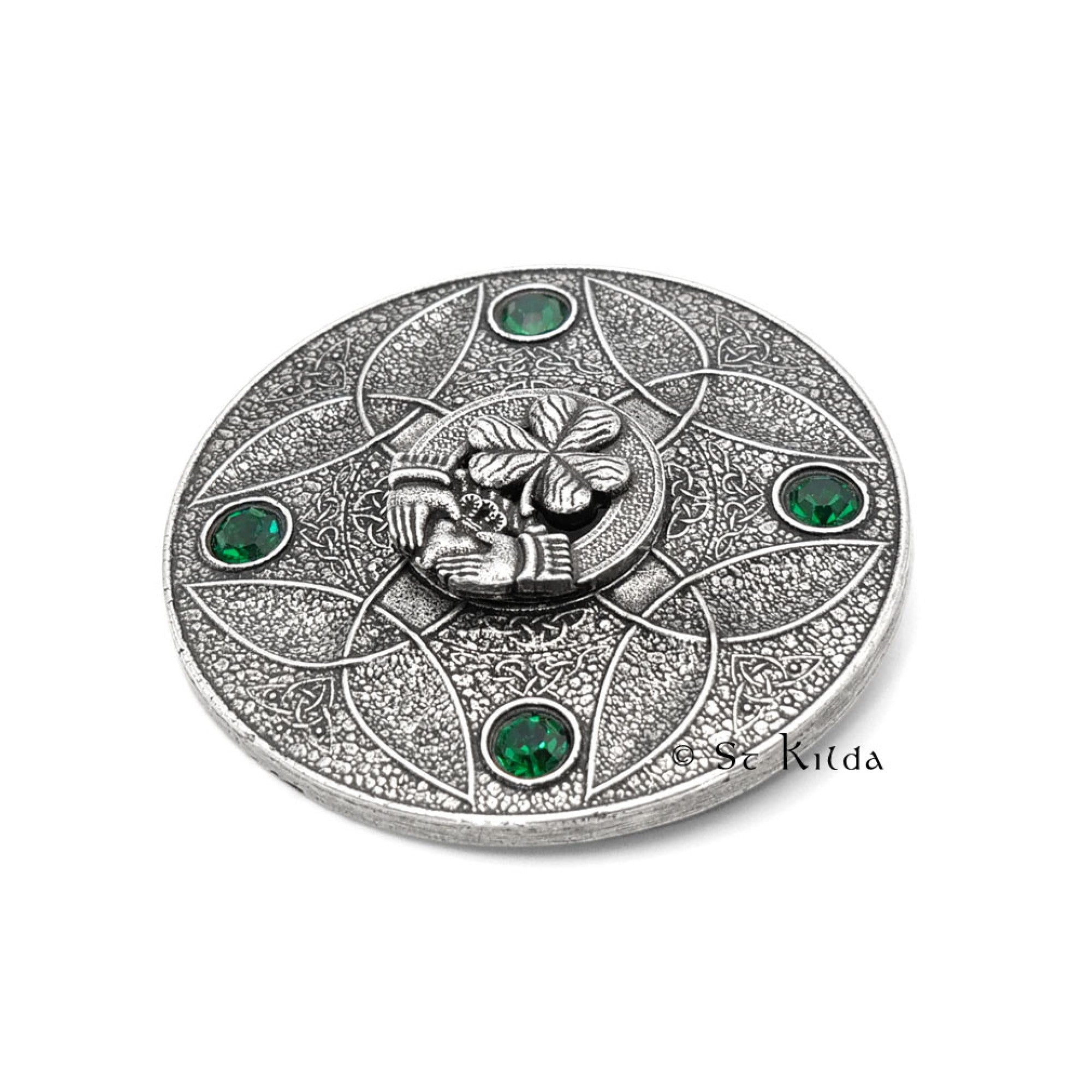 This is a smaller statement brooch: size is 6.5cm diameter - ideal for use with our fly plaids, but can also be worn as a brooch.