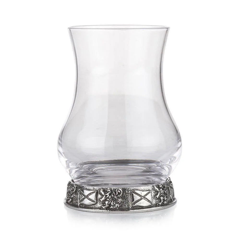 Experience the spirit of Scotland with our crystal whisky taster, poised upon a hand-polished Pewter base. The base proudly displays the majestic Rampant Lion and the iconic Scottish Saltire, evoking a deep sense of Scottish pride and heritage with every glance.
