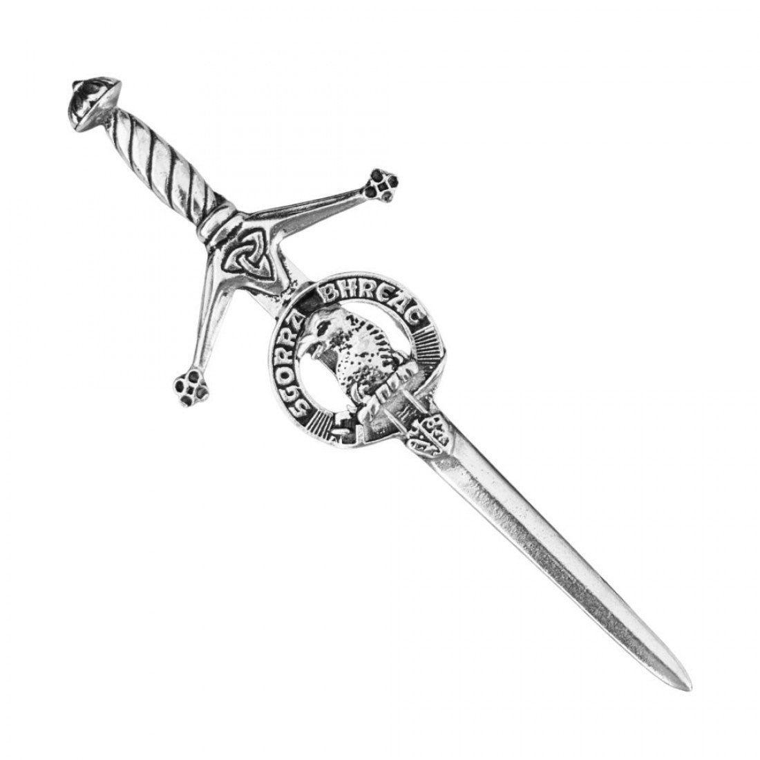 Complete your kilt outfit with this expertly crafted Clan Crest Kilt Pin. Made in Scotland from lead-free Pewter. Worn proudly on the front of your kilt, it adds both weight and a personal touch to your attire, keeping your kilt secure and enhancing its appearance. Perfect for formal gatherings, Highland games, or special occasions, this kilt pin is a meaningful addition to any clan member's collection.