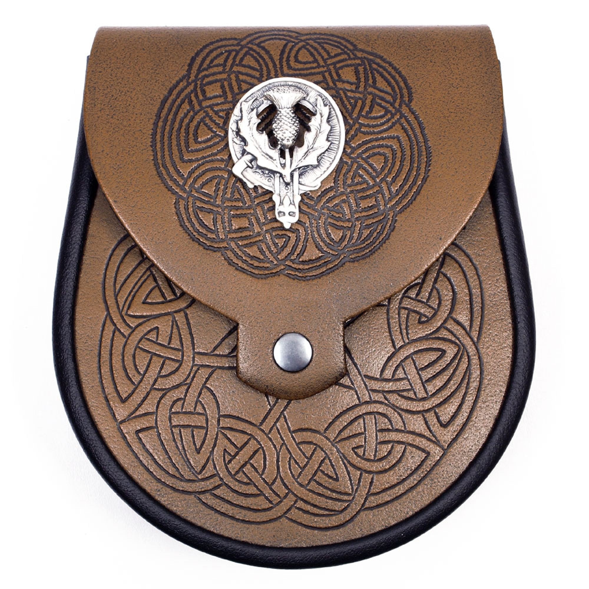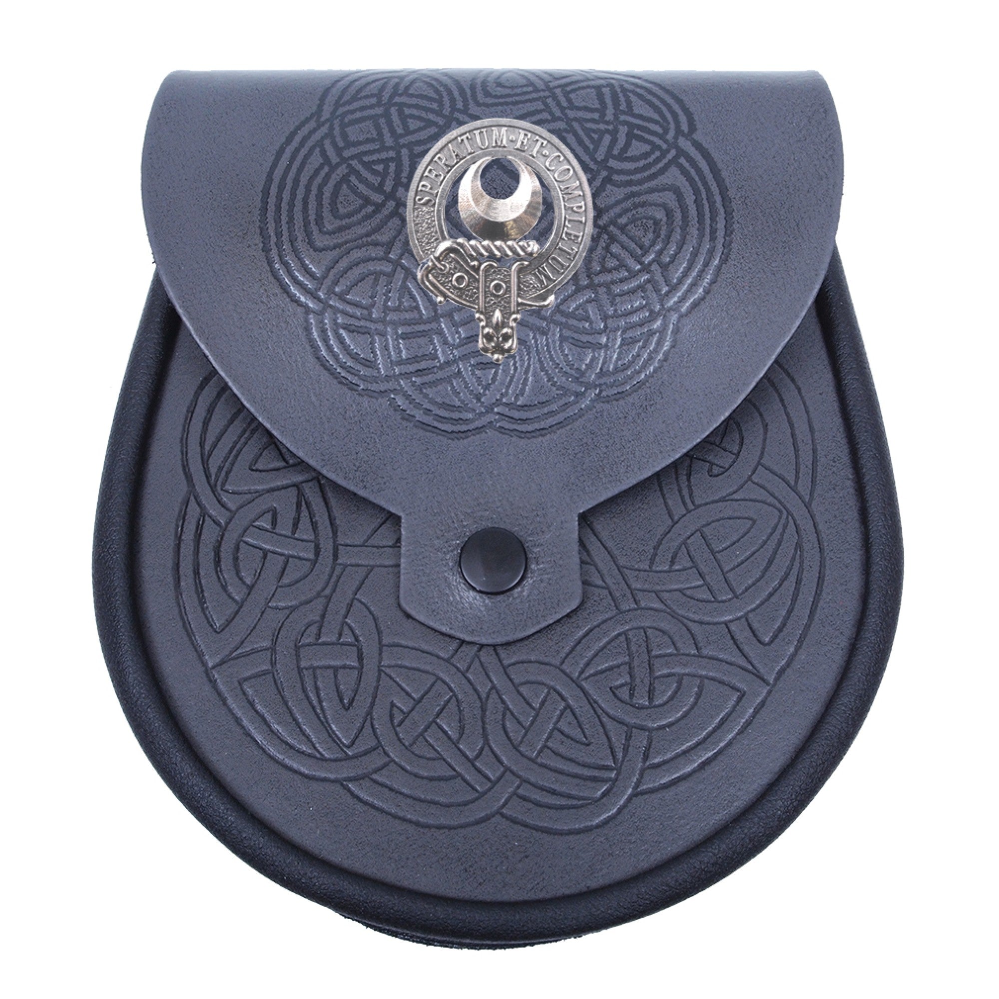 Expertly crafted in Scotland, the embossed leather design showcases intricate Celtic knotwork, creating a striking yet sophisticated look. More than just an accessory, this sporran offers ample storage space for essentials such as your phone, wallet, keys—and perhaps even a wee flask for a quick dram!