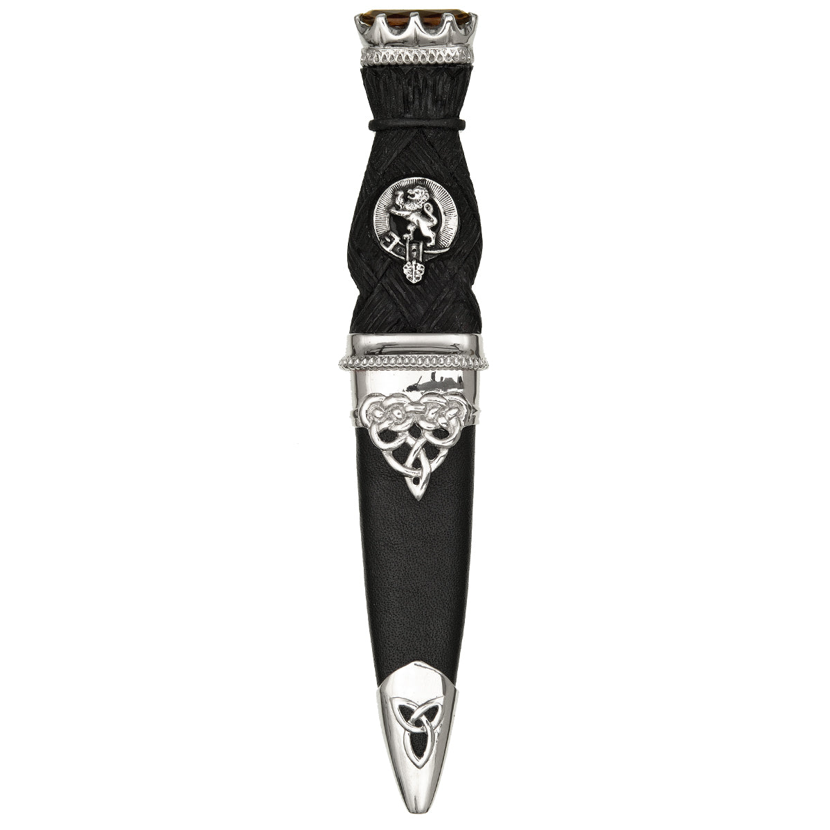 Deluxe Sgian Dubhs are of the finest quality, incorporating superior leather sheaths and highly polished mounts. A magnificent presentation box is also included - making it ideal as an extra special gift. This model has a claw stone setting, available in any of six colours. Overall length approx 7.25" (18.5cm).