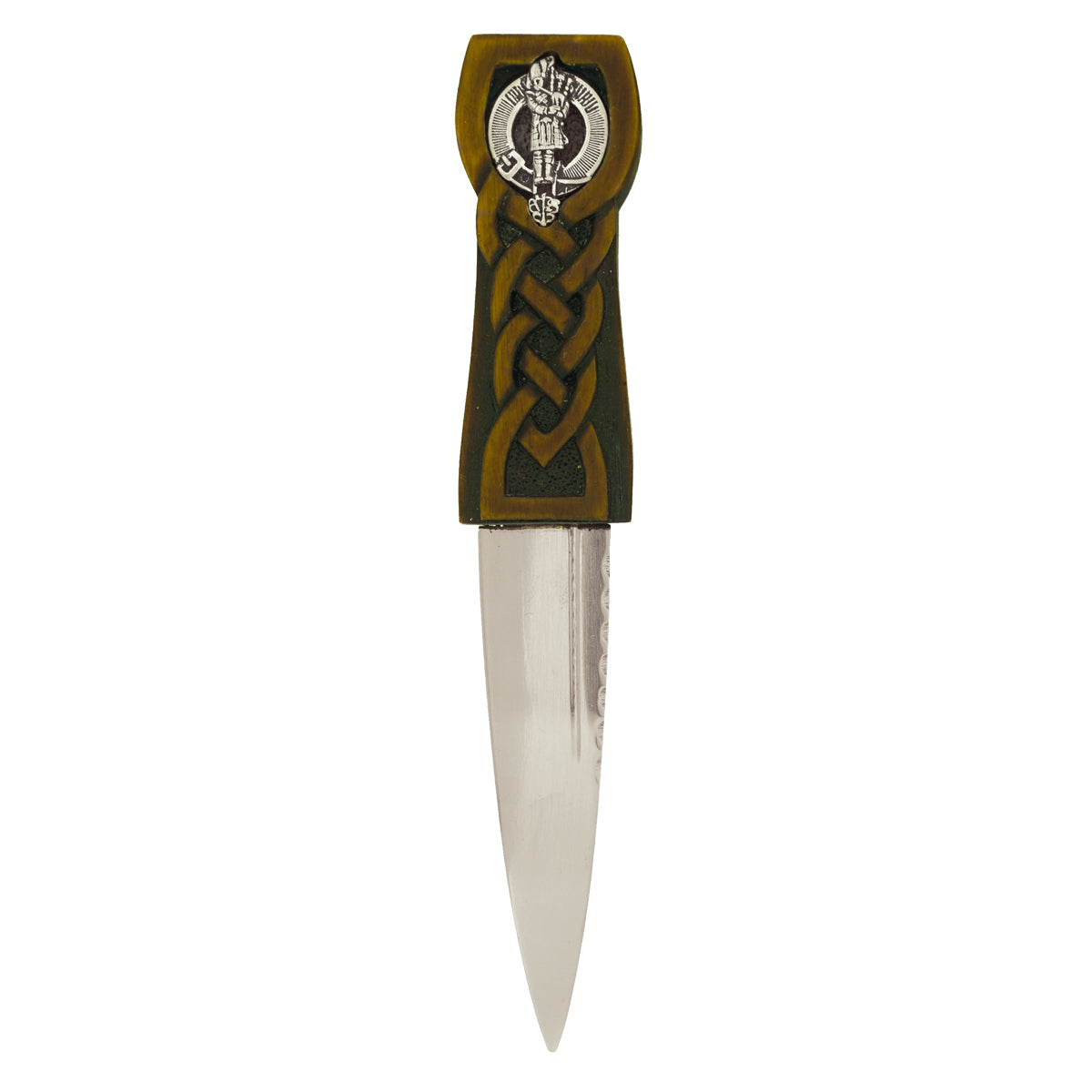 Resin Handled Sgian Dubh, supplied with your choice of clan crest badge. Finished in an Antique Silver effect.